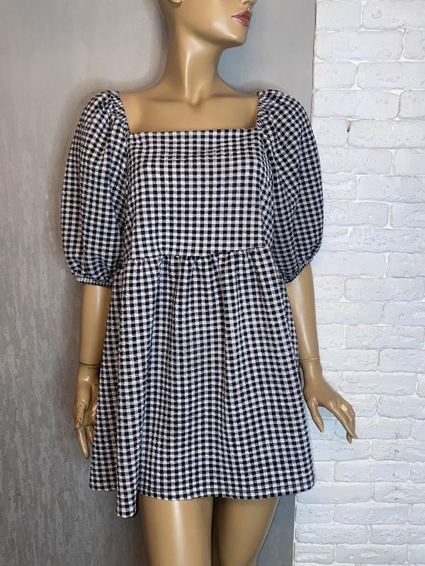 Туника с объемными рукавами короткое платье в клетку очень большого размера батал Yours, XXXXL 58-60р. Длина 75,5см, пОГ 58-65см, ПОТ 53-68см, ПОБ 81см