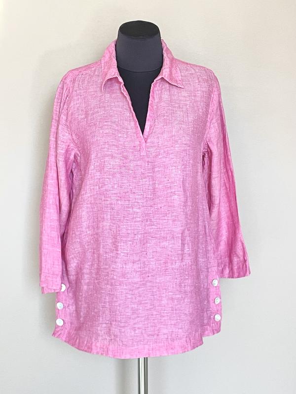 Нова стільна неймовірна блуза туника повністю з натурального 100% льону. Яскрава ефектна дихаюча. Ідеально на літо. Гудзики натуральний перламутр! Дуже якісна та дорога річ, яка прослужить не один рік! Розмір М