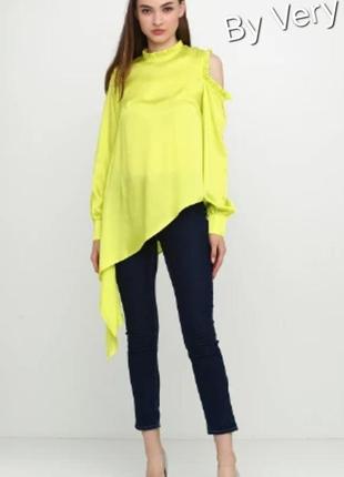 Туника удлиненная на одну сторону, с открытым плечом и длинными рукавами, яркого лаймового цвета, размер 18, подойдут и на 14 и 16