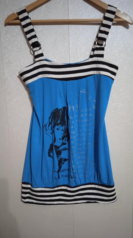 Красиво майка - туника. стильная и молодежная. Замеры осуществлении собственноручно. Длина бокового шва - 57 см Полуобхват грудей - 43 см Ответим на все Ваши вопросы. Хорошего Вам дня)