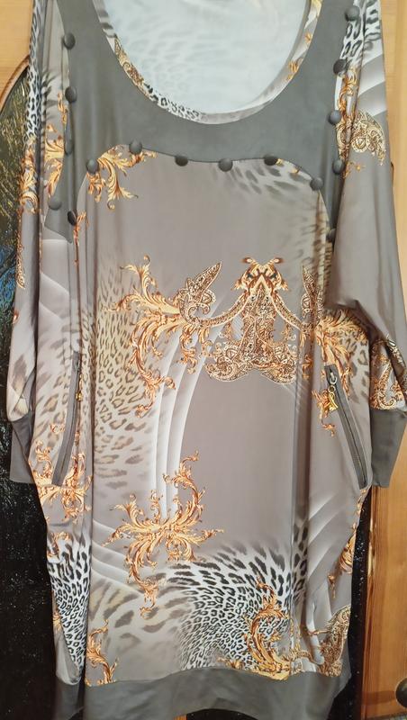 Жіноча туніка Cadrelli, турецька фабрика, с сучасним леопардовим принтом в гарному виконанні. Довжина 94, Ог 75, ос 65. Рукав летюча миша, на манжетах, карманах змійка з прикрасою. Виглядає туніка ошатно та невибагливо.