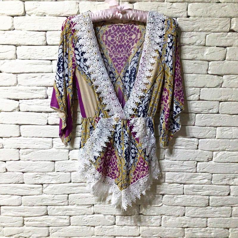 Домашний ромпер с гипюром. Глубокий сексуальный вырез , на талии резинка , маленькие шортики. Есть маленькое пятнышко на рукаве. Замера - ПОГ - 40-41 см , ПОТ - до 40 см , ПОБ 43 см , длина верхней части - 35 см , шорты - посадка впереди 28 см . Указан размер М , но подойдёт на S-ку. Доставка: НАЛОЖЕННОГО ПЛАТЕЖА НЕТ. Оплата на карту Приват банка. Отправка Новой почтой или Укрпочтой