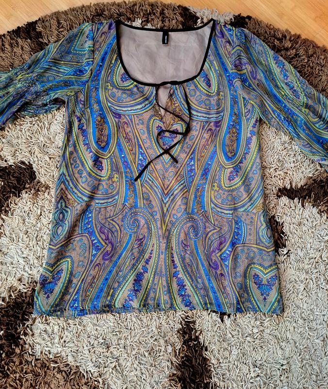 Длина 77см,ширина под руками 55см, ширина по плечам 40см,длина рукава 52см.Невесомая приятная ткань