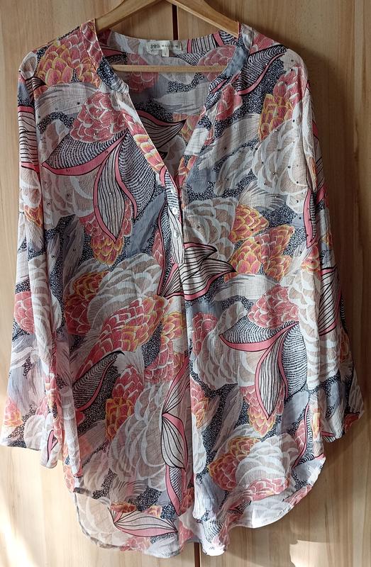 Туника женская, пуговки, стразы. Millennium. Размер L. Длина — 85 см по спинке, длина рукава — 59 см, полуобхват груди — до 58 см.