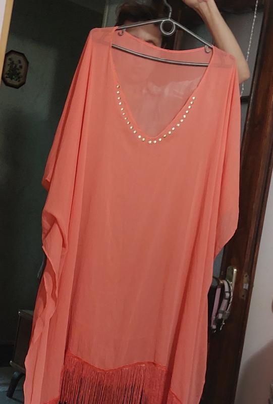 Необычайно нежная на ощупь шифоновая туника с френзлями внизу, придаст вашей фигуре особый шарм.