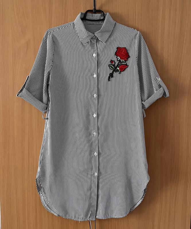Italy котоновая туника прямого кроя, можно под пояс. &Размер по бирки М. Фото на модели с размером S. Длина 86 см. ПОГ 48 см. Рукав 31 см. Плечи 39 см. Стан б/у, сток.