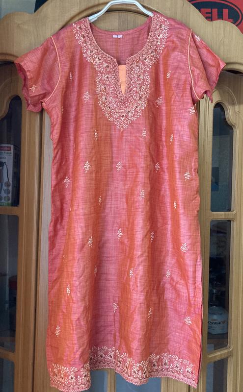 Очень красивое сари, инди стиль, лен-нейлон, не тянется. Спинка закрыта. Подойдет под лосины или брюки парашюта (есть в ин объявлениях). На невысокий рост можно без ничего) Имеет две распорки по бокам (от низа 45см) Длина изделия 95см, ширина 45см.