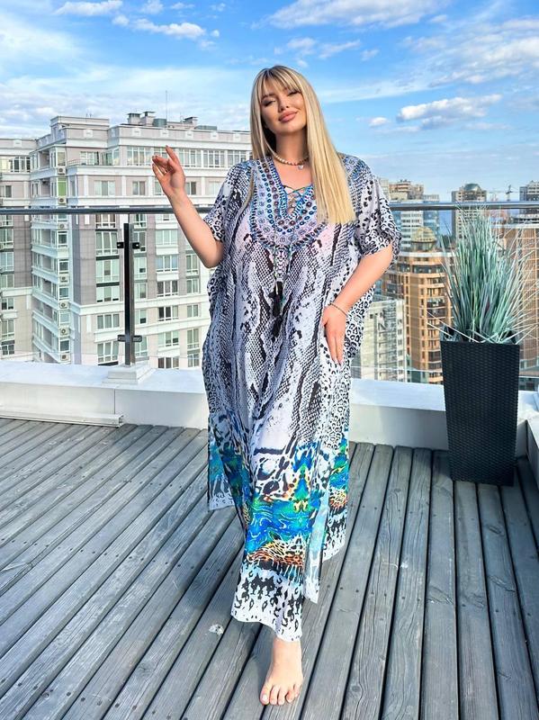 SW644 Розкішна новинка Ідеальна сукня-туніка для відпочинку Відмінна якість, легка та тоненька Розмір універсальний за рахунок крою, підходить на розміри L-6XL Довжина 134 см; замір виробу: об'єм грудей та стегон 160 см Швидка доставка 1-2 дні