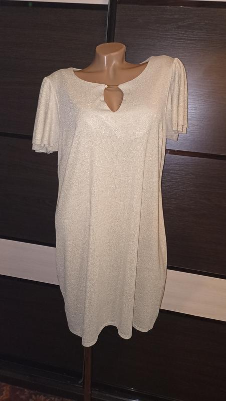 Оздоблена штучка. Блищить золотим кольором, тому що прилягає золота люрексова нитка. Тягнеться. Нова, залишок із магазина, бирочка загублена, залишилася тільки кліпса. ОГ 108-130 см ОТ 110-128 см ОС 126-150 см Довжина 84 см