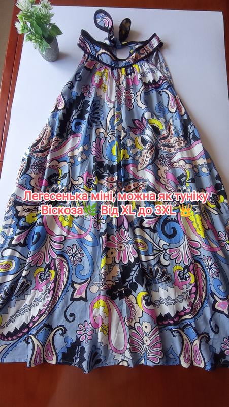 ❗БАГАТО ЯКІСНОГО ОДЯГУ В ПРОФІЛІ❗❤️🔥 ОТ МАЛЕНЬКОИХ РАЗМЕРОВ К ОДЕЖУ НА ПИШНЫЕ ФОРМЫ!🌹ЗАЩИТАТЕ, БУДУ РАСДА ОТДООТРЕБЛЯЯ НА ВАШИ широкий пояс 🌿 📍Воздушное мини платье от TU из 100% вискозы. Яркая и стильная, можно как тунику, в том числе и пляжную👑 Завязывается на горлышке сзади. Крой свободный, трапеция, украсит любой тип фигурки💚 Ткань легкая и приятная к телу. 🏷️ Размер указан 22, можно от XL до 3XL, но обязательно ориентируйтесь на замеры, пожалуйста: полу охват груди - 66 см, можно свободно, полу охват талии - свободно, 72 см, длина от шеи - 89 см, от проймы рукавчика до низа - 53 см. ‼️К сожалению, уже когда начала фотографировать, нашла несколько зацепок, в носке незаметные. Цена, соответственно, низкая. Вещь не тянется, учитывайте свободу облегания, пожалуйста💜 ❤️🔥 Не уверены? Есть Безопасная оплата, сможете осмотреть вещь перед получением! 🥰 📍 Если у вас остались вопросы - пишите, рад ответьте 🥰 ❤️В профиле много интересного, заходите, пожалуйста❤️🔥 Делаю частые обновления, так что подписывайтесь, чтобы не пропустить что-то безумно нужное😁 С ❤️ РЕЧИ С СЕРЦОМ 💋