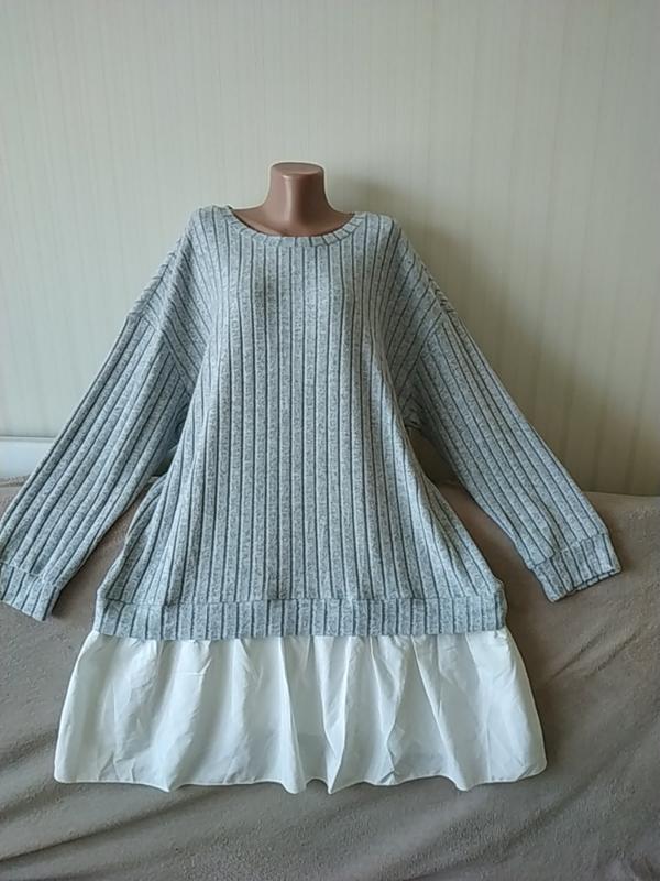 ткань тянется, мягкая, приятная к телу, белый низ не тянется длина 70 см+ белое спереди/сзади 20/36 см, пог 66-80 см, поб 75+, белое свободно, плечи66 см, рукав от шва, 52 см, пройма 30 см