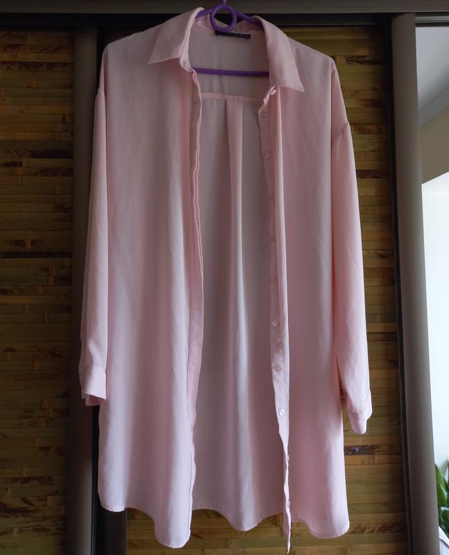 Просвечивается Цвет светлый как на фото 1 но немножко яркий. 100% полиэстер Полуобхват: Грудей 51 Талии 49 Бедер 49 Длина от плеча≈80 Длина рукава 48 Тканина не тягнеться.
