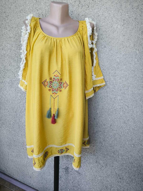 Туника в этническом стиле, вышивка, вискоза Грудь до 125 Бедра свободные Рукав 37 Длина спинки 77