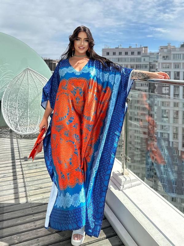 SW651 Розкішна новинка для красунь PLUS SIZE Ідеальна сукня-туніка для відпочинку Відмінна якість, тканина атласний шовк Розмір універсальний за рахунок крою, підходить на розміри XL-7XL Замір виробу: об'єм грудей та стегон 200 см! Довжина 136 см Швидка доставка 1-2 дні