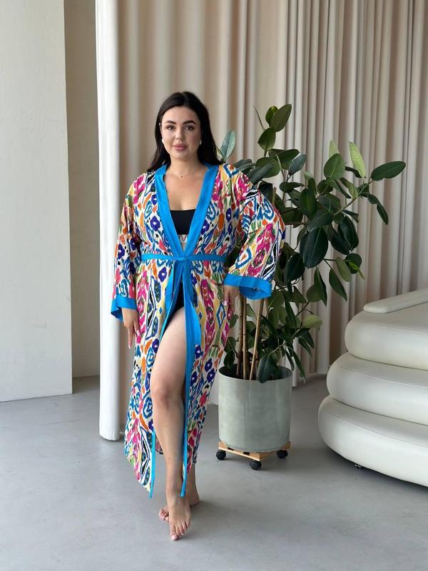 Незамінна річ для літнього відпочинку красиві та яскраві туніки , які можна використовувати як халатик, як туніку або як додатковий елемент в одязі Максимально універсальна річ SW657 Відмінна якість виробу Натуральна тканина штапель Розмір універсал за рахунок крою, підходить на розміри М-2XL Стегна та груди 95-120 см Швидка доставка 1-2 дні