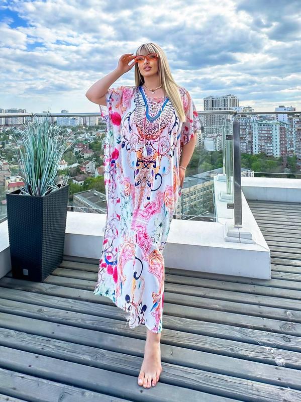 SW640 Розкішна новинка Ідеальна сукня-туніка для відпочинку Відмінна якість, легка та тоненька Розмір універсальний за рахунок крою, підходить на розміри L-6XL! Довжина 130 см; об'єм грудей 160 см Швидка доставка 1-2 дні