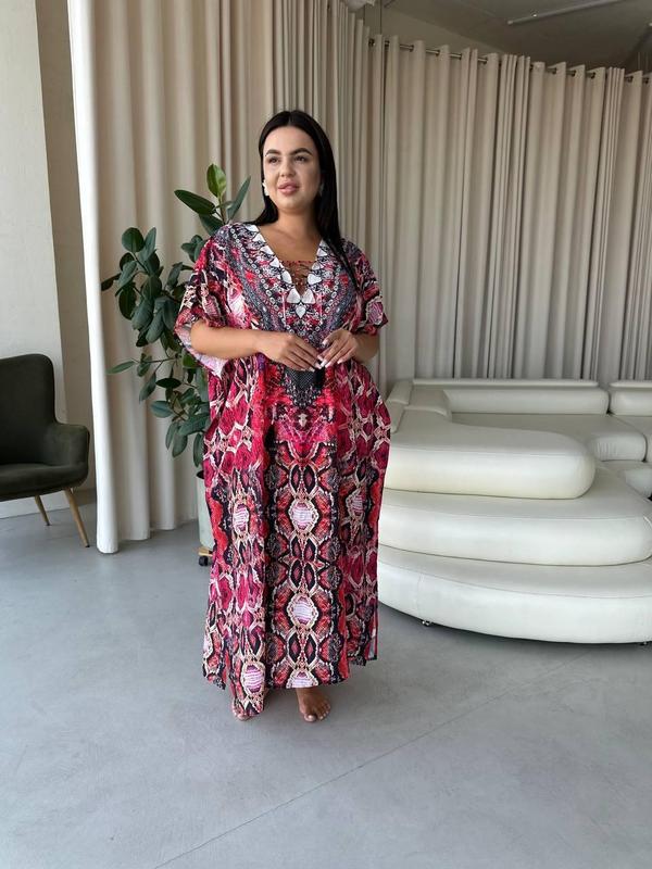 SW674 Розкішна новинка Ідеальна сукня-туніка для відпочинку Відмінна якість, легка та тоненька Розмір універсальний за рахунок крою, підходить на розміри L-6XL Замір: довжина 130 см; об'єм грудей 164 см Швидка доставка 1-2 дні