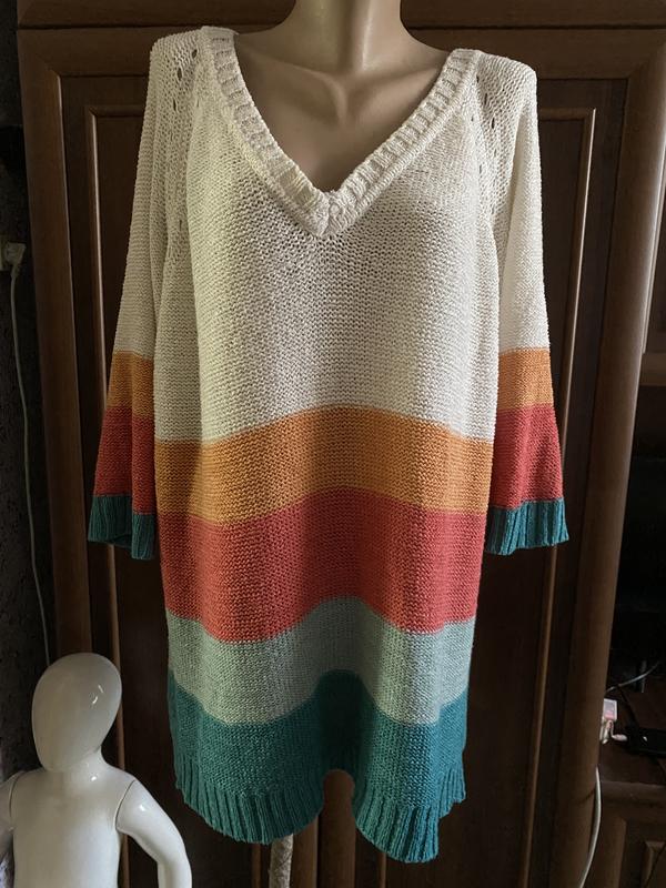 Красивая кофточка- туника оверсайз размера xl. Но может подойти и на более крупные размеры до 5хl Наделась на размер 58 (укр)
