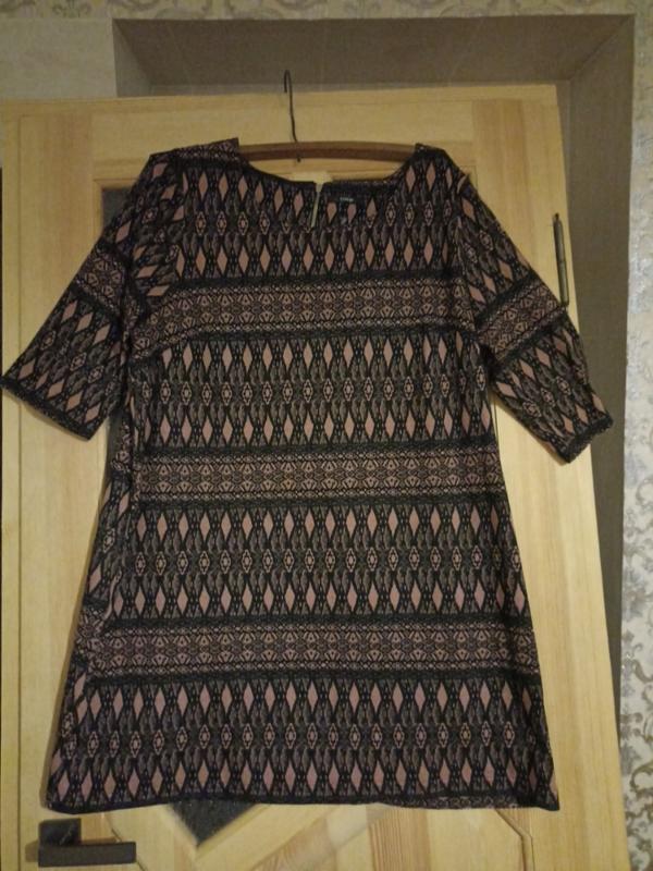 Тепленькая, очень мягкая туника батального размера.Рукав 1/2, материал искусственный, но ощущается как шерсть- легкий и теплый. Сзади на короткой молнии, которая больше декоративна, так как горловина достаточно велик Состояние новой, легкое б/в Грудь 135, талия135, беждра145, длина94 см
