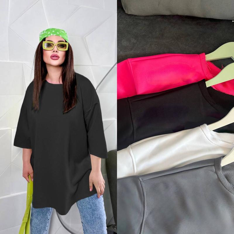 Туника крой оверсайз. Осень 🍂 Невероятно красивый, качественный материал. Мод.282 Цена 🇺🇦800 грн Размеры:50-58 универсал ✔️ Доступно в 4-х цветах: графит, малина (неон), черный, белый ✔️ Материал: турецкая трехнитка петля, без утепления (70% хлопка, 30% полиэстера) Не обработанные швы. Чтобы они закрутились надо при первом использовании растянуть материал. ОГ 140 см, длина 82 см. P.S. Модели: Аня / Размер 48-50 Параметри: 100-74-100 Виктория / Размер 52-54 Параметры: 110-84-115