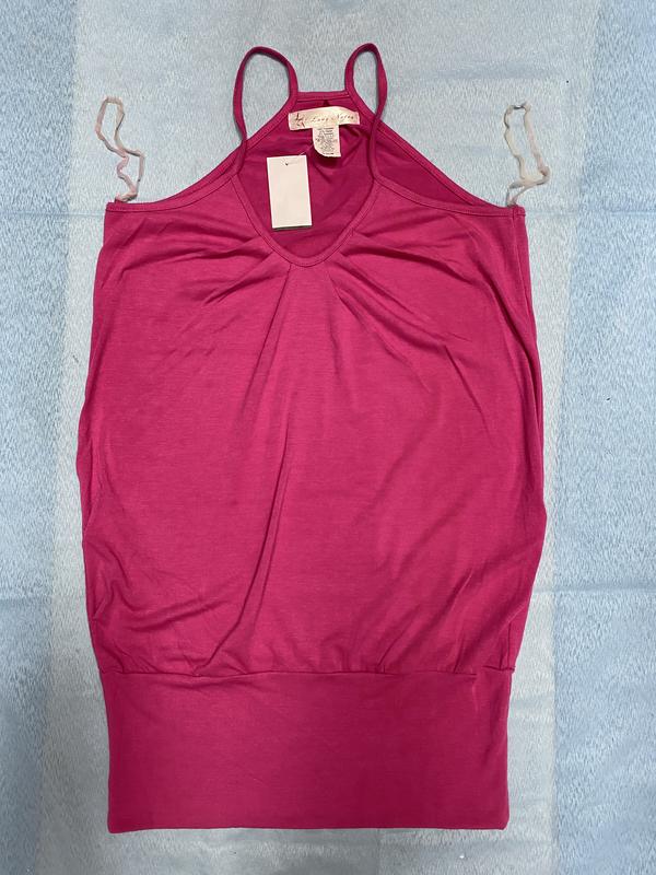 Майка-туника женская американского бренда Love Notes, выполнена в розовом цвете, с широкой резинкой внизу, производство США, материал ( стрейчевый ) : 64% полиэстер, 33% район ( вискозное волокно ), 3% спандекс! Материал дышащий, стрейчевый! Размер: US ( L ): ширина ( под ножнами) - 40 см, длина ( общая ) - 78 см, длина (от мыса ) - 55 см.