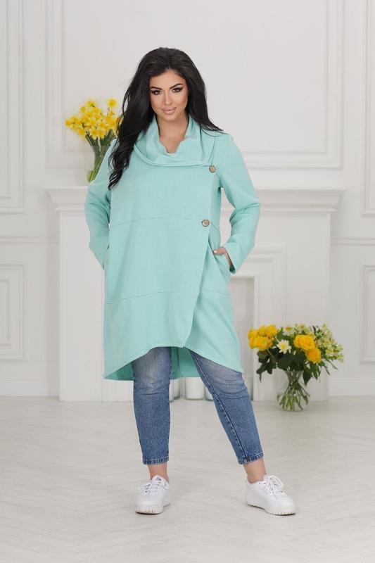 В НАЯВНОСТІ❗️❗️❗️ Модель: 180 Женская накидка, свободного кроя, умеет декоративные пуговицы, эта вещь на каждый день. Тканина: 2х нитка(петля) Цвет: мята,черный, мокко, розовый. Цена:1080грн Размеры:46-48;50-52;54-56;58-60 46-48 Объем груди 106см Объем талии 106см Объем бёдер 114см Длина по переду от плеча 86 см Длина по спинке от плеча 102см Длина рукава от горловины 78см 50-52 Объем груди 114см Объем талии 114см Объем бёдер 122см Длина по переду 86 см Длина по спинке 102см Длина рукава 79см 54-56 Объем груди 122см Объем талии 122см Объем бёдер 128см Длина по переду 86 см Длина по спинке 102см Длина рукава 79 см 58-60 Объем груди 130 см Объем талии 130см Объем бёдер 136 см Длина по переду 86см Длина по спинке 102 Длина рукава 79.5 см