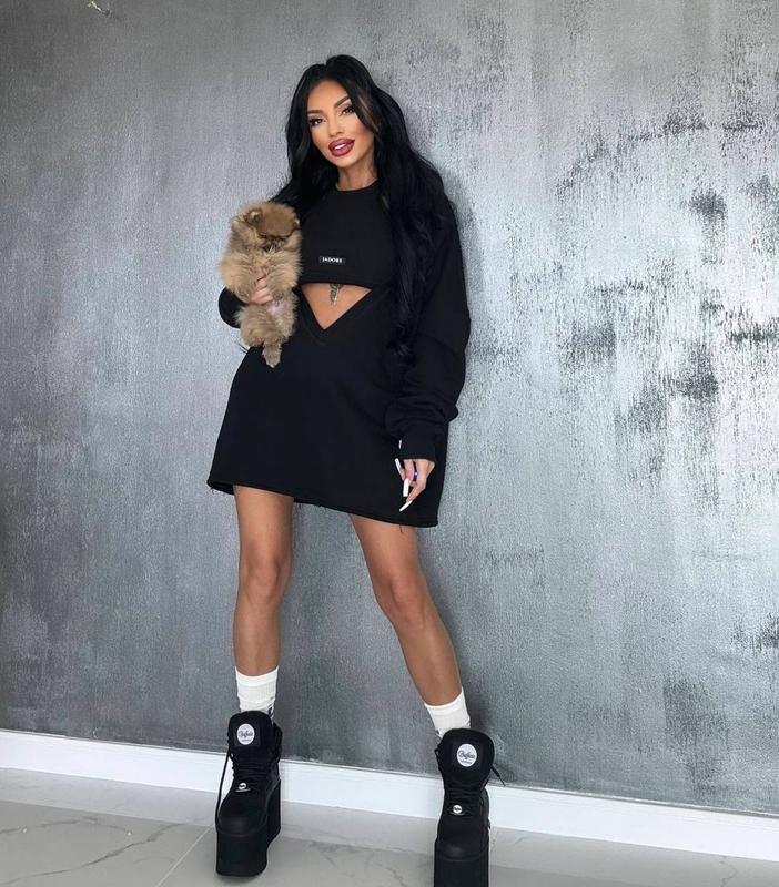 Туніка Мод 252 ▪️Тканина: двонитка + рубчик ▪️Размер : 42-46 ▪️цвет: черный, белый Качество люкс⚜️ Оригинальное сочетание туники и топа,трендовые цвета 🥰 Подойдет как под кроссовки так и под каблуки ❤️ Не отказывай себе быть яркой этой весны 🤗
