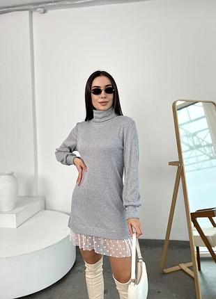 Платье-туника Модель 154 Ткань: ангора рубчик, сетка Размер: 42-44, 46-48 Цвет: серый, молоко, пудра Цена: 680 грн. Уютное теплое платье с сеткой в горох. Воротник идет с подворотом. Ткань мягкая и приятная к телу. Идеальное платье, которое подойдет под разнообразные образы🥰