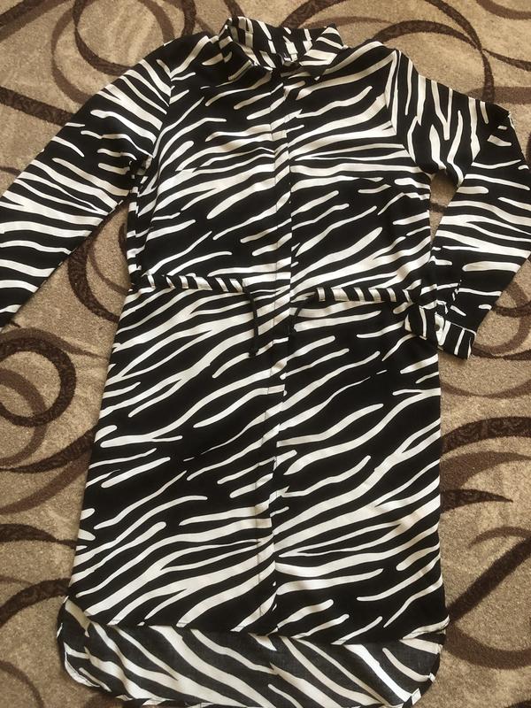Сукня- туніка, принт зебра. Стан ідеальний. Заміри плечі — 39, груди — 51, рукав — 62 см, тканина віскоза. Спереду трохи коротший, ніж ззаду. Оплата на карту