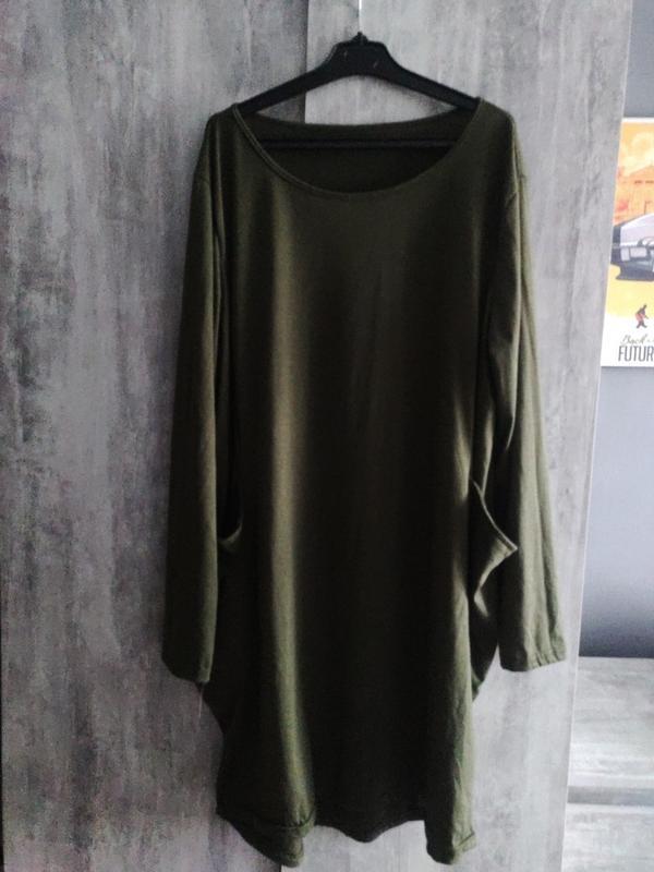 Платье- туника, батал,на госпожи с пышными формами.Можна носить как отдельную вещь, то есть платье, а можно как тунику под скинни, леггинсы и т.д.Очень приятная надотик.Мает две вместительные кошени.Фасон имеет удлиненные вытачки сверху вниз, что робе ниуэт длиннее вытянутая фигура хозяйки.. Донизу немного зауженная..на бирке написано размер 4XL, но смотрите по замерам: погрудей 62-66 постегон 72 по низу 65 длина 88/92 біцепс 21-24 очень приятная, функциональная вещь. Смотрите другие вещи большого размера у меня в Шаффе.бодрствуй.🌹🌹🌹
