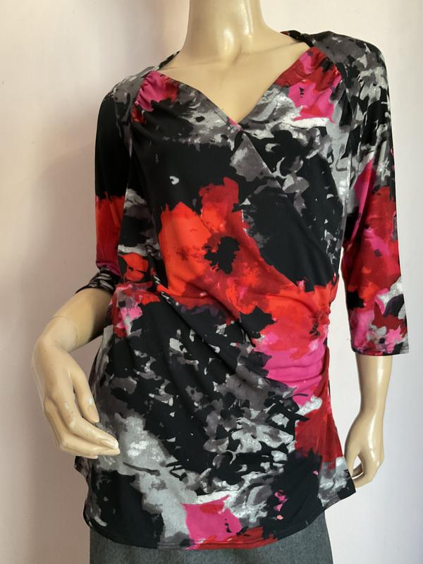 Красивый принт, хорошо тянется. Без дефектов. Замеры в груди 55-56см в талии 52-54см в бедрах 58см длина 70см рукав - реглан 55см 22:10:24
