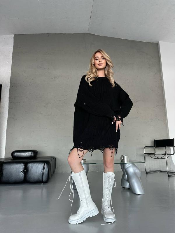 Туника рванка Oversize. Можно надевать под лосинки и ботфорты😎 Отличное качество, не скатывается 👍Выглядит стильно и модно👌 3042 el ▪️Производитель Турция 🇹🇷 ▪️Размер единый 42-46 ▪️Ткань вязка 🔸Безопасная оплата | Полная оплата | Наложный платеж 🔸Обмен | Возвращение