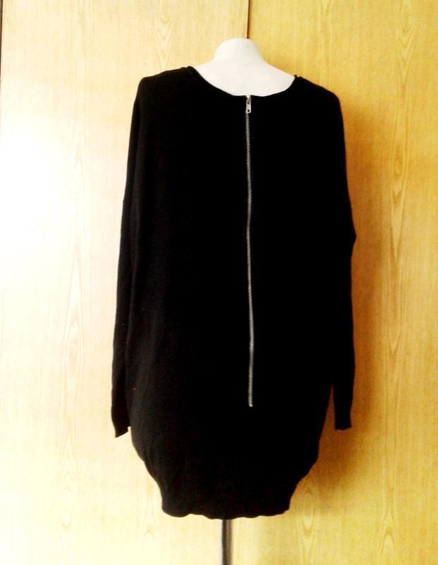 Черная туника оверсайз, пуловер с молнией по спинке, джемпер, м/ 2xl.