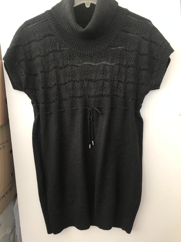 Нарядная женская туника с воротником «хомуток» с люрексом, черная,красиво смотрится с светлой блузой или гольфом, ПОГ 50, длинна 78