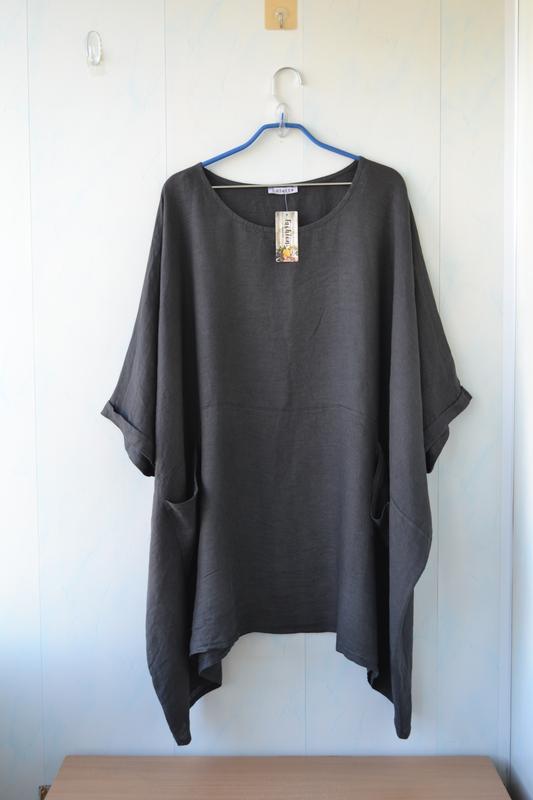 Льняная разлетайка, балахон, блузон, туника Colette в стиле бохо из 100% вареного , мягкого льна, Италия. Прекрасный крой, длина, ткань, летом не жарко, скроет все недостатки, прекрасно смотрится и с штанами, и с шортами, бриджами, юбкой. Реальный цвет на фото с составом. Темный коричневый, очень богатый цвет который идет практически всем. Размер единый , ориентируйтесь по замерам. Пог- 113, поб- 111 , длина рукава от горловины- 50, длина- 86 см.