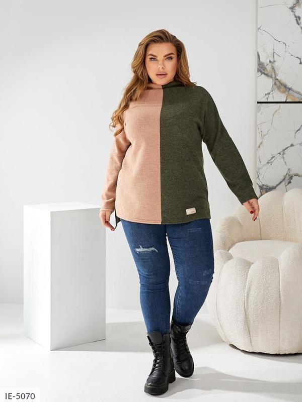 Туніка 💥 Цена: 890 грн.🔥 Размеры: 54-56, 58-60, 62-64, 66-68 Маркировка: 2xl 3xl 4xl 5xl Ткань: ангора рубчик с начесом Цвет: хаки с мокко Замеры туники Арт. 1721 Разм. / ог. / оса. / дов. 2хl / 114 / 124 / 75 3хl / 120 / 130 / 78 4хl / 128 /138 / 84 5хl / 138/ 148 / 86