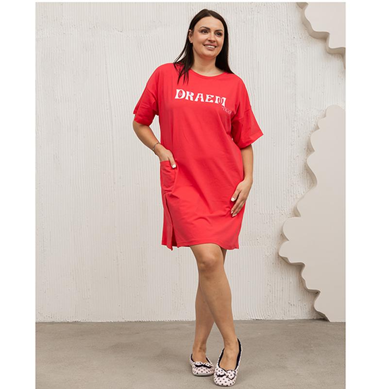 Туніка жіноча бавовна колір червоний з написом 18297