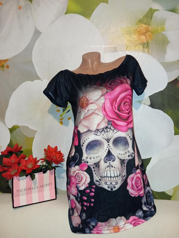 Симпатичная туника с черепом , размер указан М.Цвет серо- черный.Ткань тянется Без нюансов Замеры предоставлю по требованию Подписывайтесь на мои обновления 🌹💐🌺