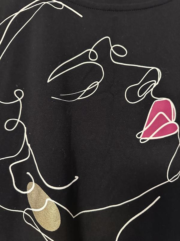 Стильное, лаконичное платье-туника, свободного покроя. Размер s, подходит на m. Прямая, немного расширенная к низу Хорошо тянется Материал- вискоза и полиамид Длина: 80 см Плечи : 37 см Груди 46