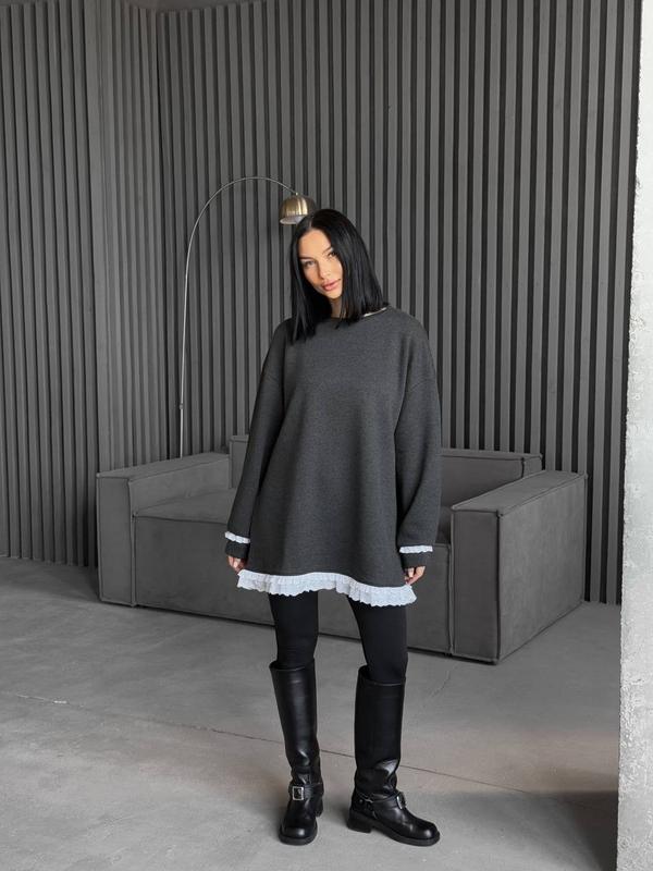 ▫️Модель 882 ▫️Тканина тринитка петля 🇹🇷 ▫️Цвет серый,черный ▫️Размер универсальный ▫️Замеры ▫️Груди 120 ▫️Рукав с плечом 74 ▫️Длина 82 ‼️‼️‼️‼️‼️‼️‼️‼️‼️ Кружево высокого качества RSn