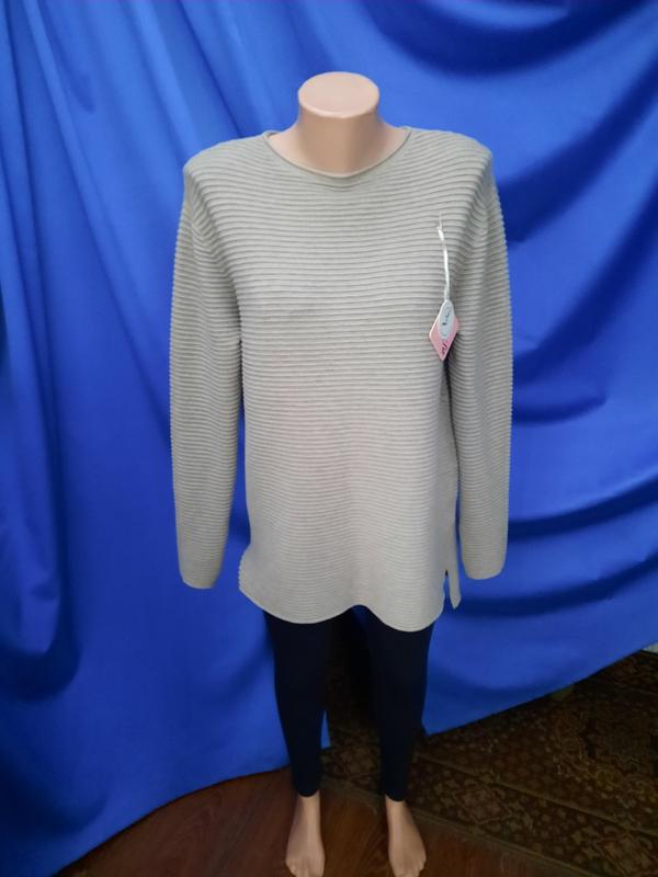 Туніка рубриста, спинка трохи подовжена, з боків розрізи. Усередині невеликий начіс, що забезпечує тепло. Пог 54 см, пот 53 см, довжина 68 см, довжина рукава 61 см. Состав: 48% віскоза, 28% поліестер, 24% нейлон.