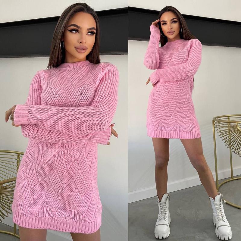 Туника Арина Машинная вязка 50% вовна, 50% акрил Размер единый 42-48 Цвет голубой, молоко, розовый, капучино Длина 80-82 см