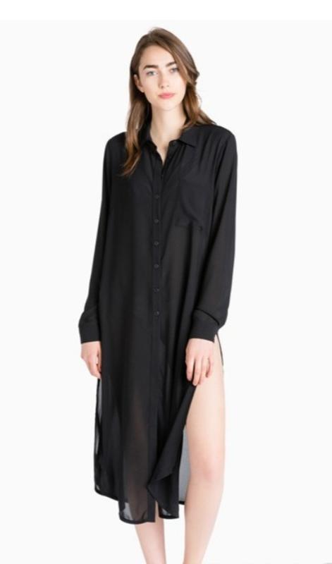 Черная полупрозрачная туника-рубашка.р.XS.плечи34.грудь 46.рукав 62.длина перед 99.спинка 106.