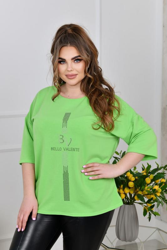 Туніка НОВИНКА💥💥💥 В НАЯВНОСТІ✅✅✅ Код* 3643 Тканина: двонитка. Размеры: 52-54, 56-58, 60-62, 64-66. Длина туники: 70, 71, 72, 73 см. Длина рукава: 50, 51, 52, 53 см. Обхват рукава: 44, 46, 48, 50 см. Замеры готового изделия: 52-54 ОГ 128 ОТ 128 ОС 128 56-58 ОГ 136 ОТ 136 ОС 136 60-62 ОГ 144 ОТ 144 ОС 144 64-66 ОГ 152 ОТ 152 ОС 152 Стильная повседневная туника из трикотажа двунитки ( растяжимость средняя). Силуэт туники прямой, свободный. Вырез горловины круглый. Линия плеча спущены, рукав длиной до локтя. По бокам небольшие разрезы. Туника декорирована стильной аппликацией из страз. Застежек, карманов нет.