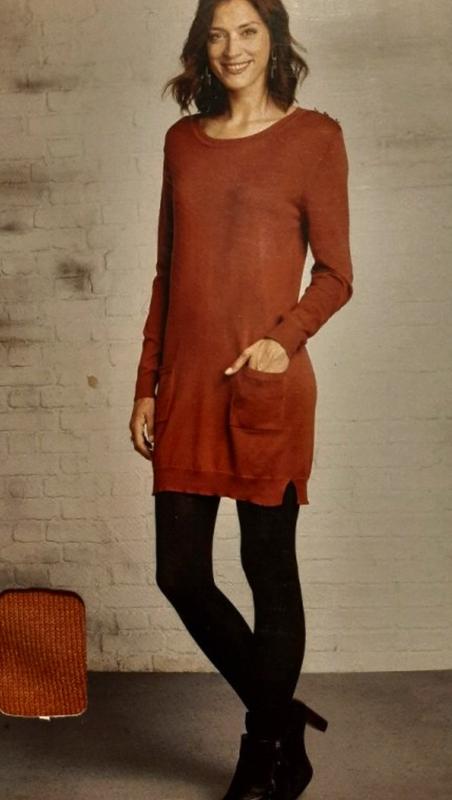 Терракотовая туника New look Модель тонкой машинной вязки по бирке р 38 Насыщенный глубокий цвет Спереди внизу кармашки Пог 42 тянется до 46 Поб 48 тянется до 54 Длина 77. Рукав 59