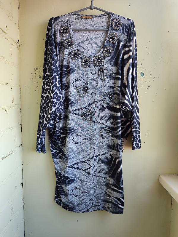 Оригинальное женское трикотажное платье туника от бренда karяis со стразами