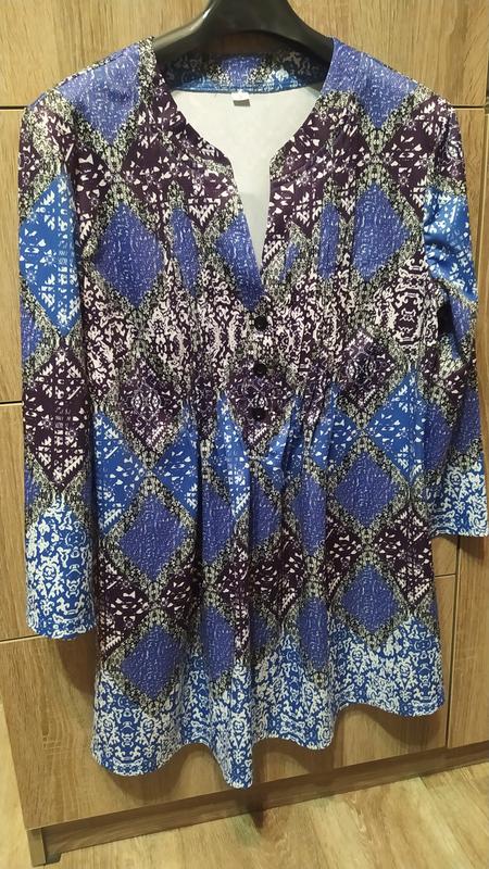 Продам тунику на размер 44( указан S). ПОГ 44, рукав 44(3/4), по спинке 69, плечи 41. Состояние новой.