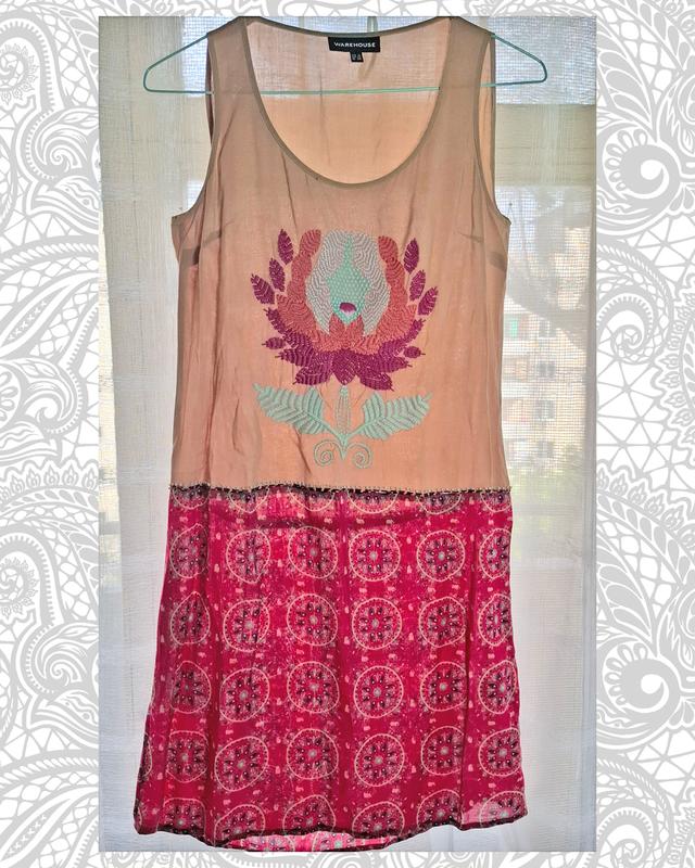 Вышитая туника в стиле бохо с контрастной нижней частью Warehouse, размер 8. Замеры полуоборота: Груди 42, Талия 43, Стегна 48, Длина 90 Состав: 100% вискоза Состояние: новая без бирки Отдам при 370 грн. #туникабохо #туника вышитая #warehouse