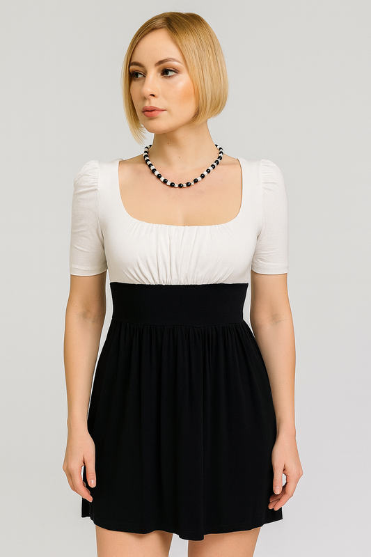 Женское платье мини двухцветное бело-черная с завышенной талией / amisu / eu 34-36 / xs-s...