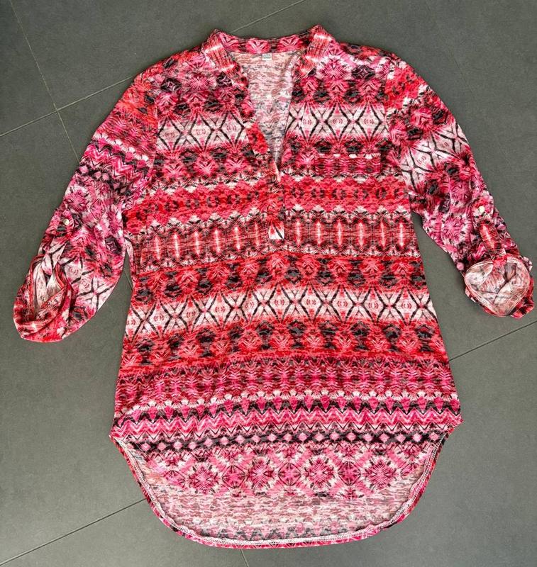 тонесенька тканина воротник стойка рукав 3/4, подхвачен хлястком и пуговицей плечи 41 ОГ 49 ОБ 51 рукав 35 длина перед 69/ зад 77